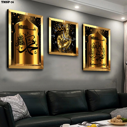 3'lü Set GOLD PLEKSİ Solmaz DİNİ TABLO VE SAAT MODELLERİ Çizim 3 Parça Pleksi Tablo VE SAAT